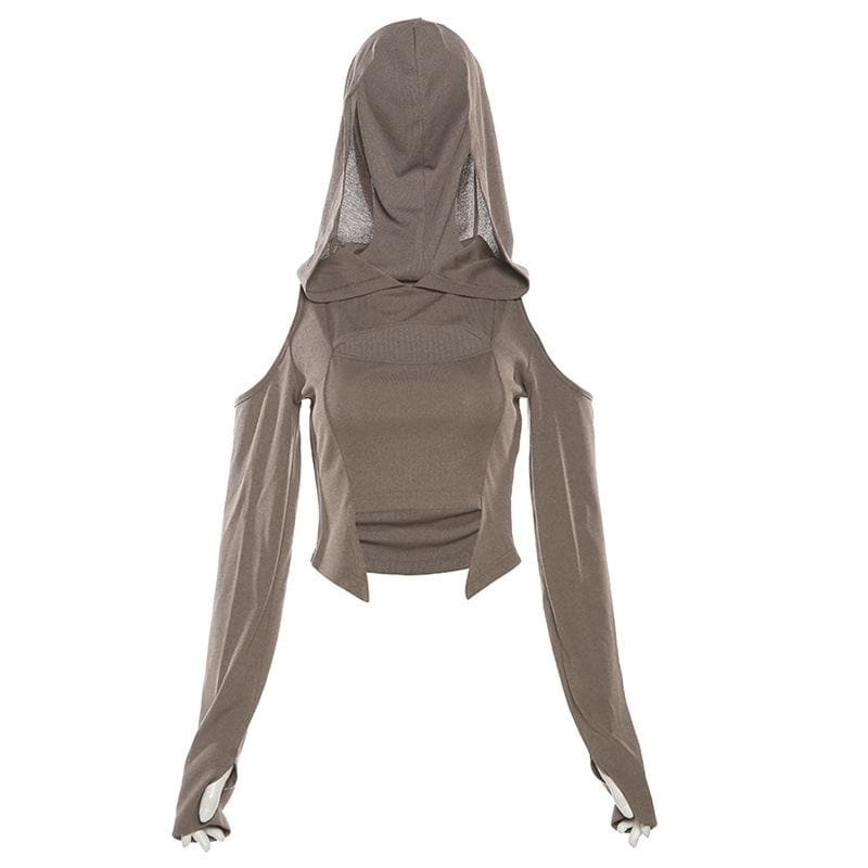 Hollow out off shoulder gloves hoodie long sleeve crop cut out top