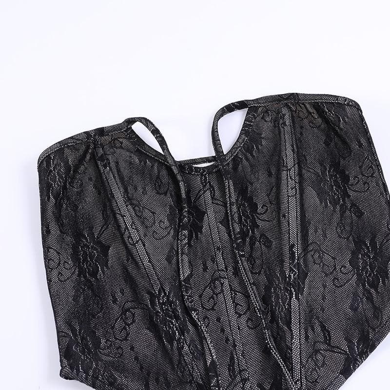 Be the first to review “Lace corset long sleeve 2-way ruffle 2 piece crop top”