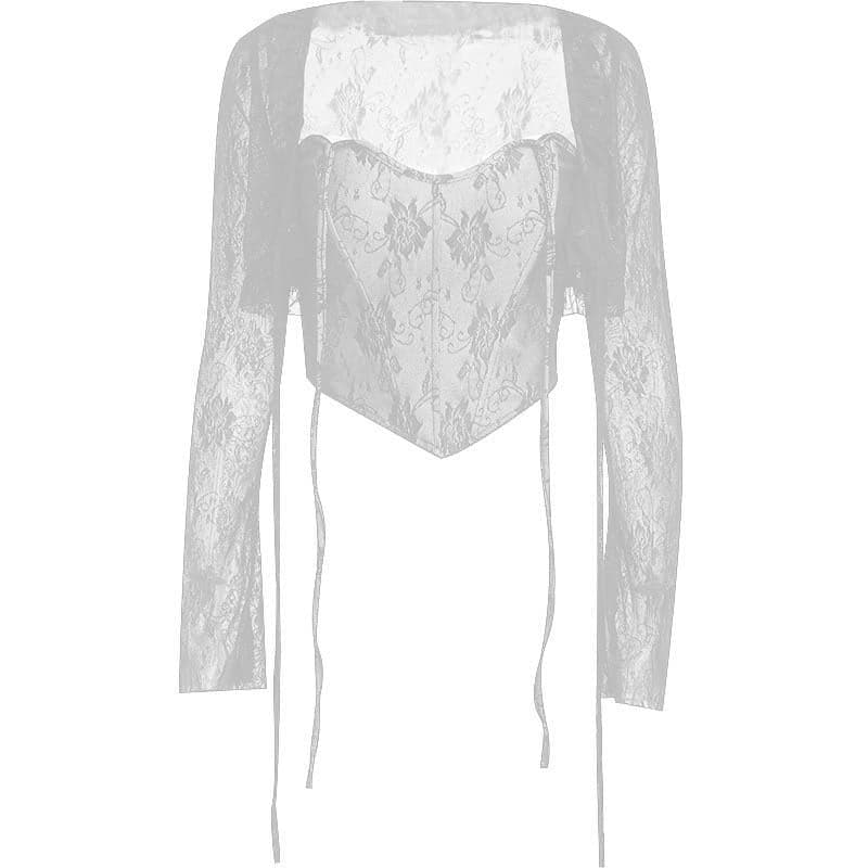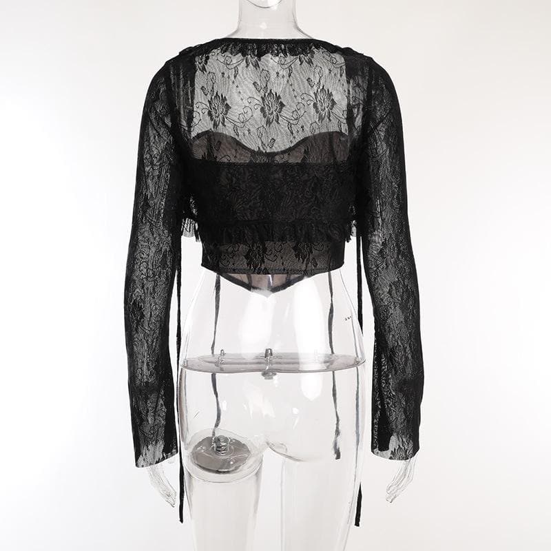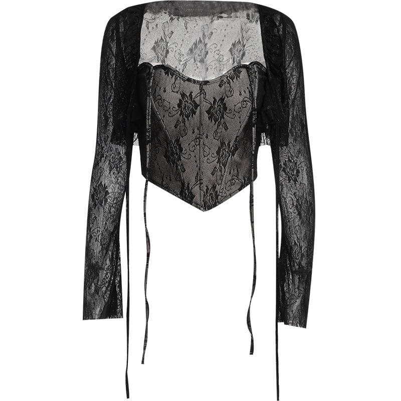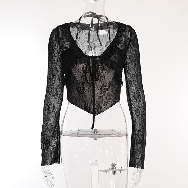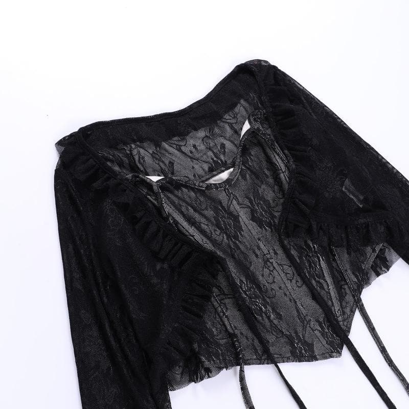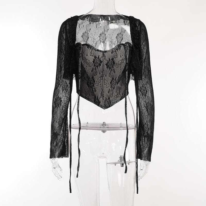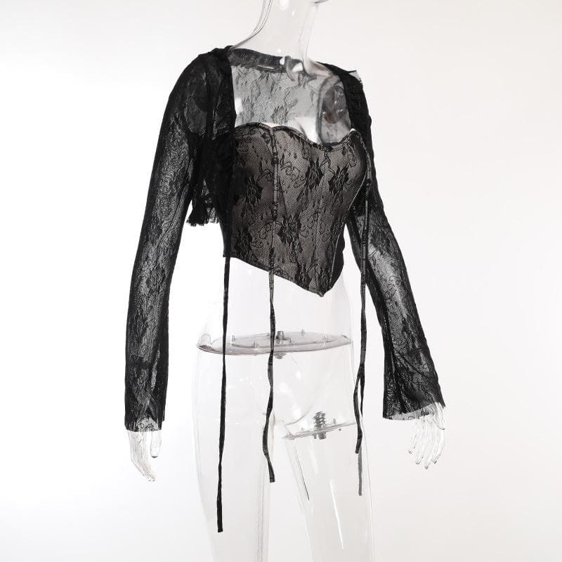 Lace corset long sleeve 2-way ruffle 2 piece crop topLace corset long sleeve 2-way ruffle 2 piece crop top